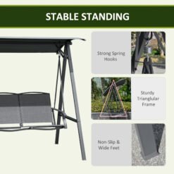 Enjoy outdoors with company, thanks to this Outsunny swinging chair. The adjustable canopy on top is easy to fix into a suitable position, protecting you from sun glare throughout the day. Two-seater size is spacious, featuring a tall back and armrests to support you. ‘A’ shaped legs for support and balance. Make your garden complete, this season and beyond.