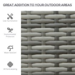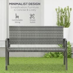 Bring a new stylish feel to your outdoors with this bench from Outsunny. It’s formed of a two layer design: a metal frame for a strong structure, wrapped with PE wicker for extra protection and durability. The grey colour is stylish and blends in with other garden furniture easily. The two-seater design gives room to relax with a friend, finished with a high back and armrests for support. Minimal upkeep, with maximum comfort and delight.