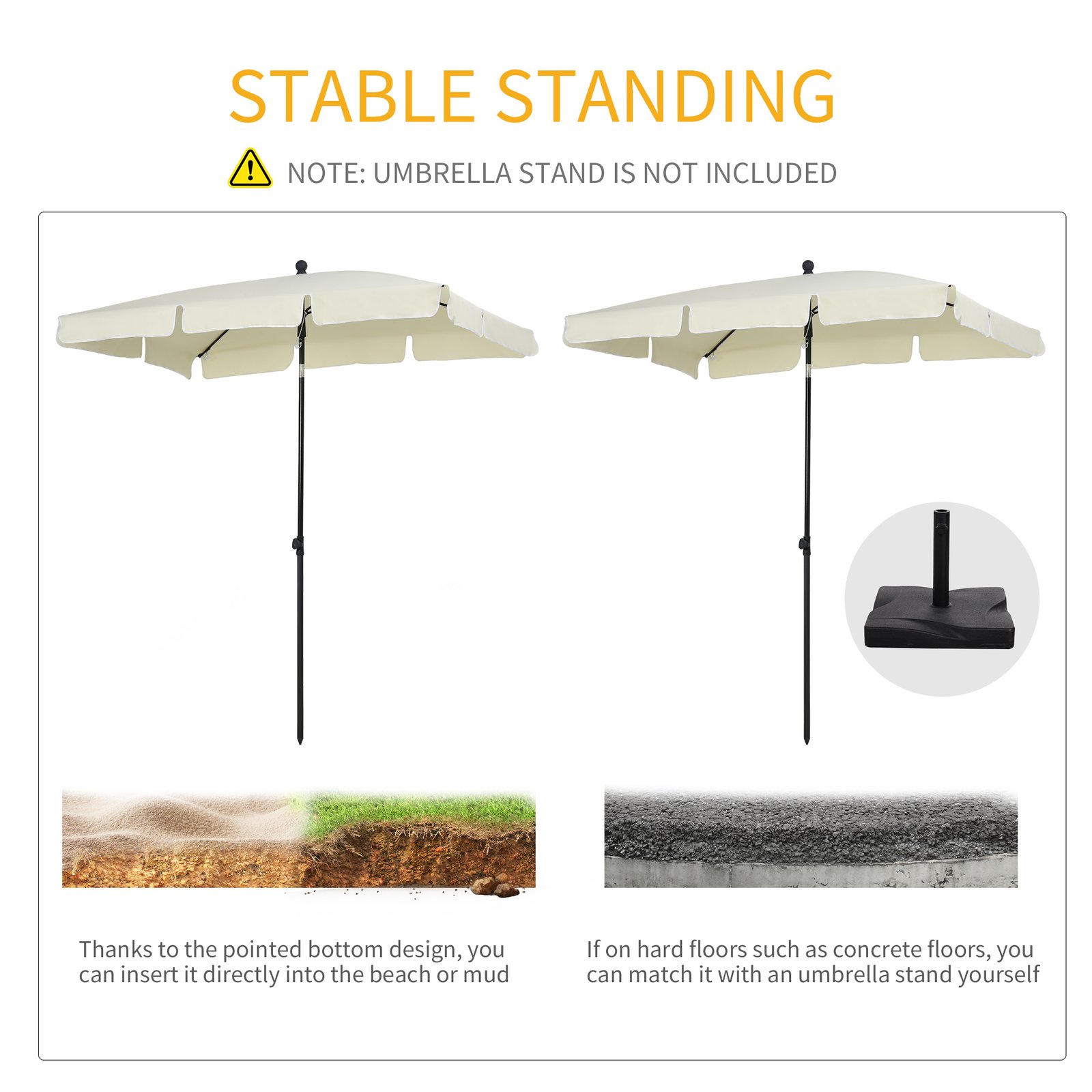 Make the sunny days even brighter with this oblong parasol from Outsunny. Made from aluminium, the pole provides strength and durability for years to come and supports the large canopy shade with four ribs for extra strength. Adjustable to different angles, the shade can provide sun shelter in many different directions up to 2.5 in total, which is great for staying out all day long. It will perfectly protect you whilst you enjoy the warm and sunny weather.