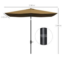 Outsunny 2 x 3(m) Garden Parasol Umbrella, Rectangular Outdoor Market Umbrella Sun Shade with Crank & Push Button Tilt, 6 Ribs, Aluminium Pole, Brown