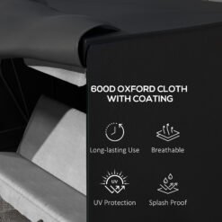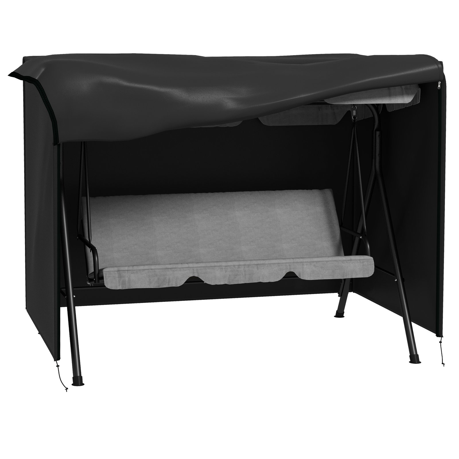 Protect swing chairs outdoors with this Outsunny cover. Made from oxford cloth, this is a tough piecetightly stitched at the seams to prevent moisture or water seeping in. Treated with a plastic top coat to stop UV rays fading the furniture in the summer, it is finished with a front zip for easy access; cover is complete with a drawstring and buckle to hold it in place day and night.