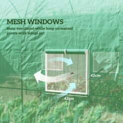 This Outsunny 245 x 200cm polytunnel greenhouse protects plants from cold, light rain and pests. It comes with four windows to bring in fresh air, plus a large roll-up door for easy access inside; also lets fresh air inside when you need. The steel frame means a strong core, with the clear plastic cover providing shelter against wind and rain – let plants grow to their best, all year round.