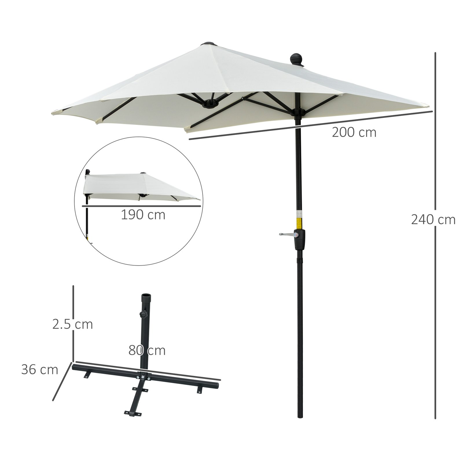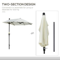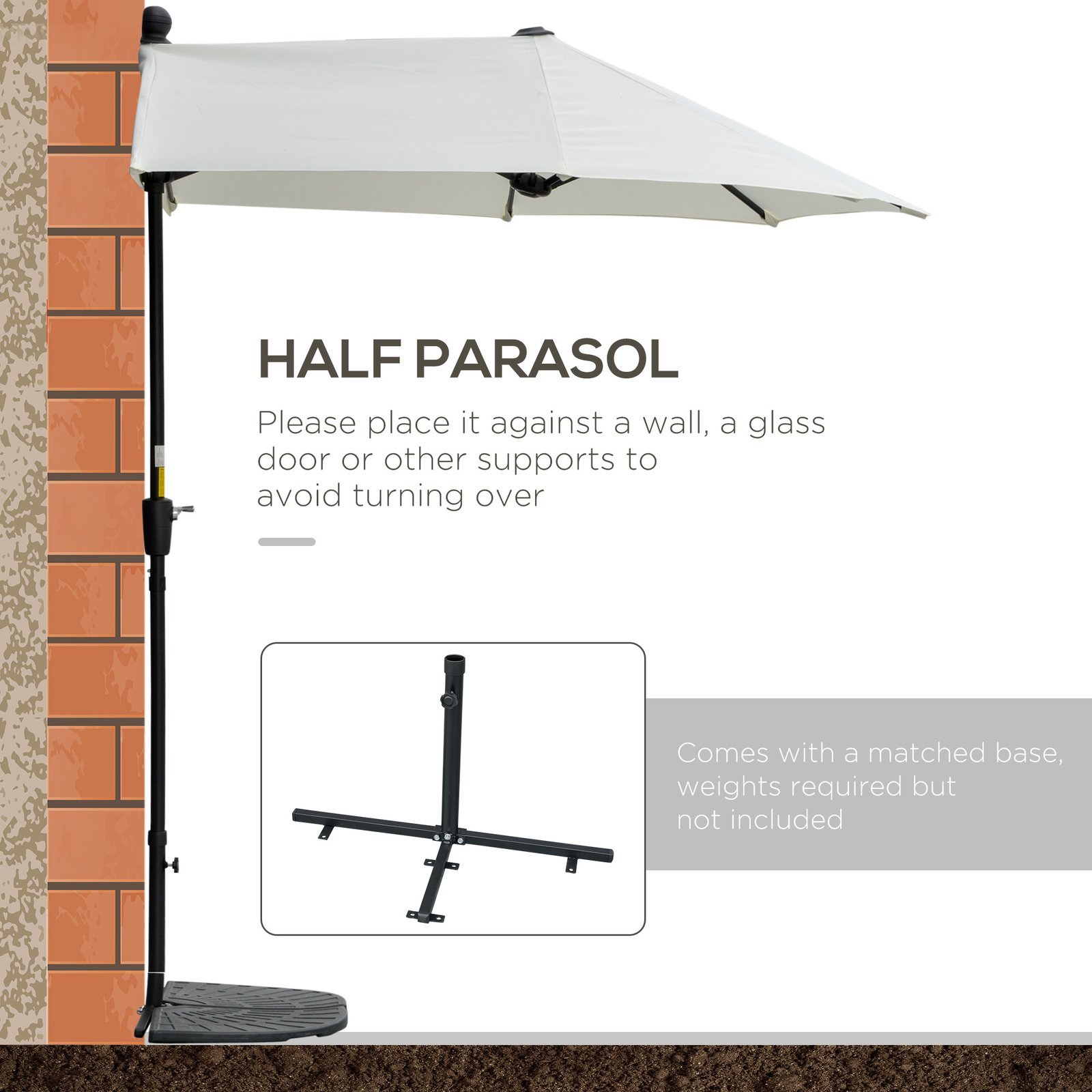 Outsunny 2m Half Parasol Market Umbrella Garden Balcony Parasol with Crank Handle, Base, Double-Sided Canopy, Cream White