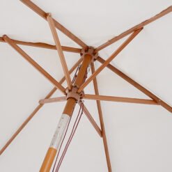 • Solid fir wood pole: In a caramel brown stain wash, ensures a tough and sturdy structure which will keep the outdoor parasol upright and in place all day long.Six bamboo ribs: Placed between the umbrella for garden table, providing extra support in tougher winds and weather.