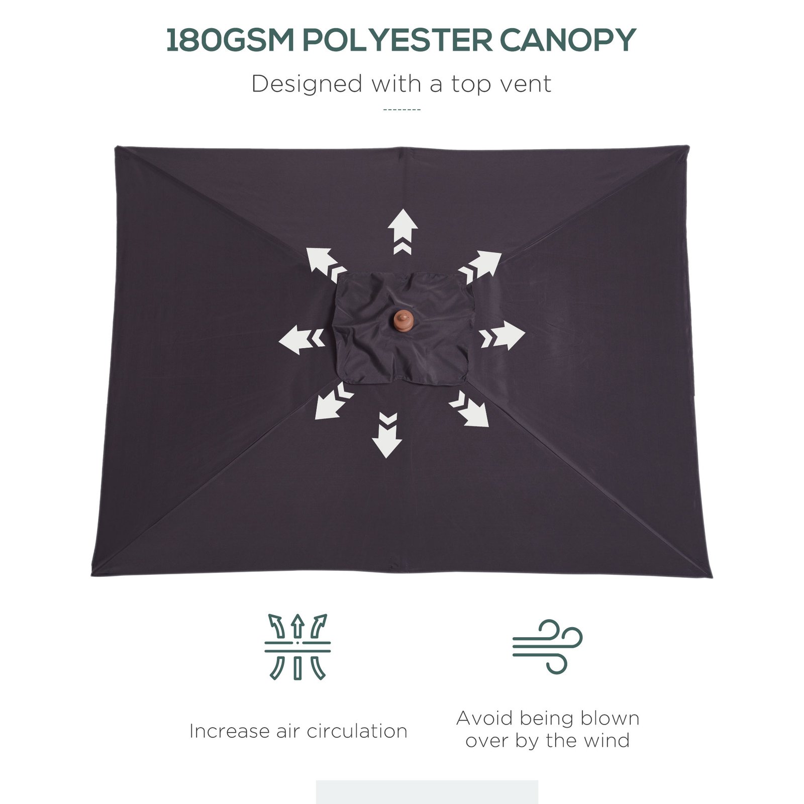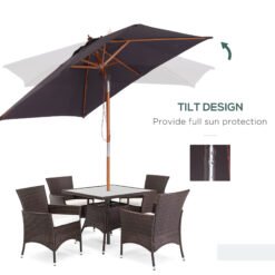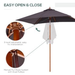 Protect yourself outdoors in ultimate style with this 2m parasol from Outsunny. On the sunshades for garden’s top, a large square canopy sits. Made from 180g polyester to provide sun protection, you can adjustable the deck parasol angle to set to a position which is best for you, with eight bamboo ribs for extra support between the frame and canopy. Its finished with a pull rope for easy opening and closing. This sun parasol is perfect blend of beauty and function.