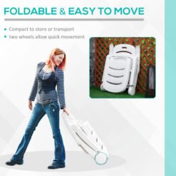 - Foldable and with wheels for easy storage and transport