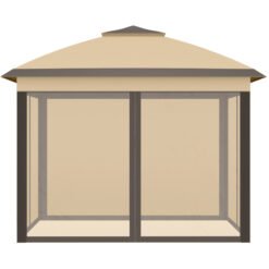 Outsunny 3.3 x 3.3m Pop Up Gazebo, Double Roof Foldable Canopy Tent with Zipped Mesh Sidewalls, Height Adjustable and Carrying Bag, Event Tent for Patio Garden, Beige