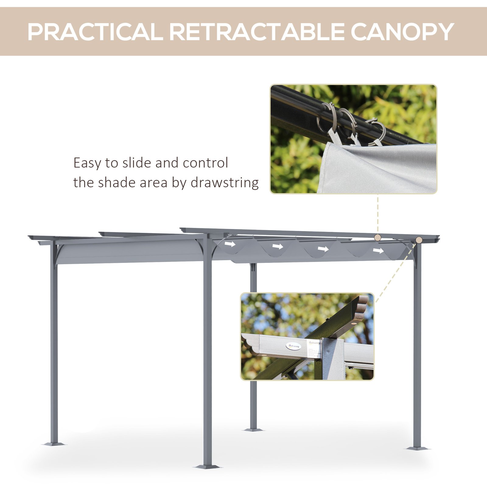 Whether it’s for use in the garden or on the patio, this Outsunny pergola with retractable roof is ideal for creating extra space for dining, socialising and relaxing. With an anti-rust steel frame that is strong and sturdy, this metal gazebo features a retractable canopy roof which opens and closes easily perfect for the interchangeable weather. Holes allow any water to drain instantly, stopping any build up from occurring and falling on you. It’s a great addition for every outdoor space.