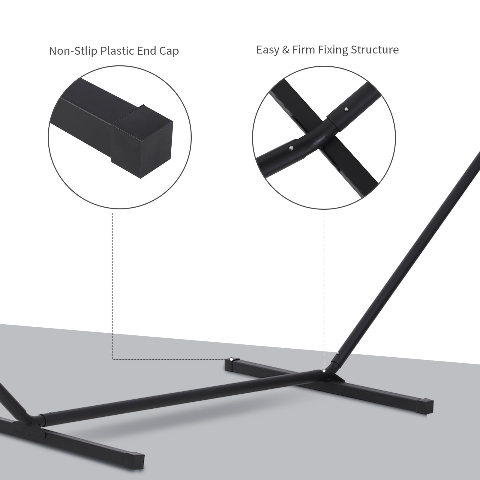 Hang your hammock anywhere without the need of a tree, thanks to this stand from Outsunny. Made from powder coated steel for ultimate strength and durability, features protectors on each end for ultimate safety. Extra safe and fitting most hammocks, it is easy to put up, safe, stable and weather resistant, making it perfect for using all year-round. Smart, useful and much needed for when you want to relax both indoors and outdoors.