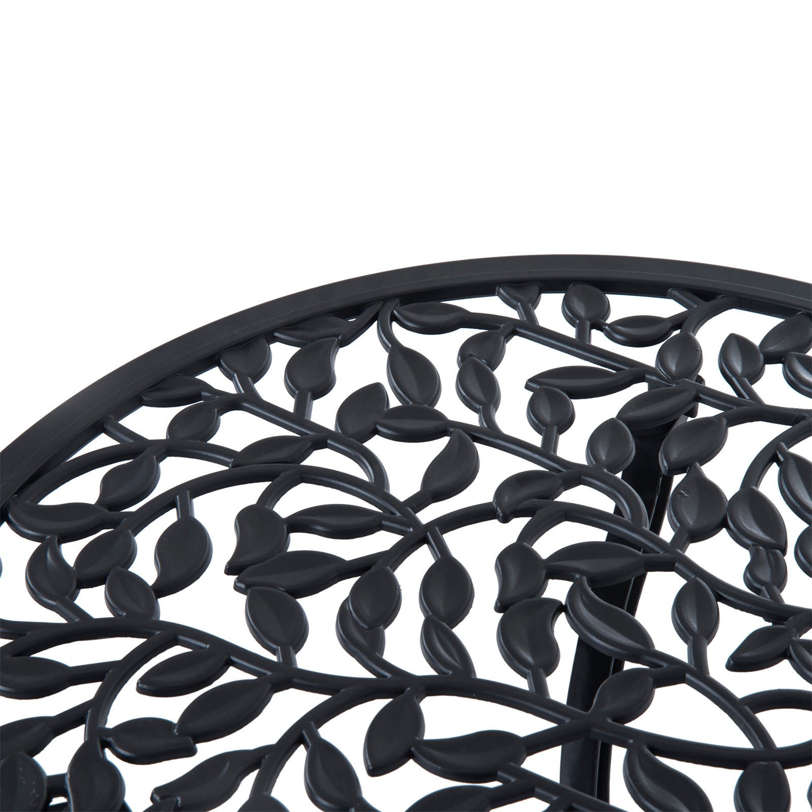 This Outsunny outdoor bistro set is for practically every outdoor space. The cut-out leaf design is pretty and elegant. Made from aluminium, the frames are strong, supportive you when you sit and relax. The metal is also resistant to peeling and corrosion for prolonged wear. Two chairs and a table mean you can gather round with company, wherever you choose to.