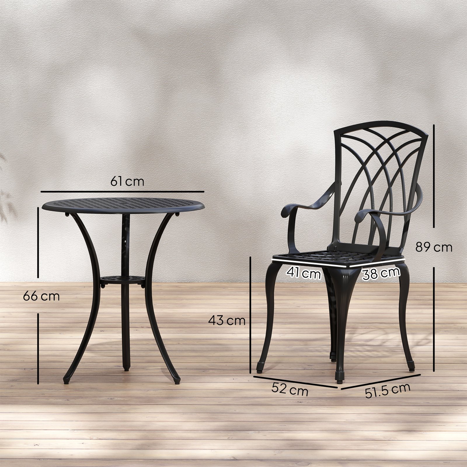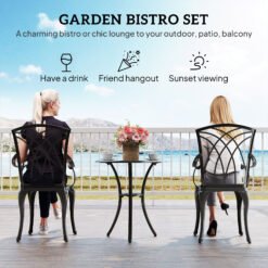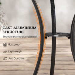 This three-piece outdoor garden furniture set from Outsunny will give you the optimal spot to dine and relax. It’s formed of two chairs and a matching table, with cast aluminium forming the frame of all pieces to ensure they are robust and tough. Round in shape, the table features a middle hole to keep a sun parasol securely in place, with the back of the chairs showcasing a cut-out design for an attractive finish. Our outdoor table and chairs are great for flats and apartments with balconies.