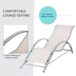 Refresh your outdoor space with the garden recliner chairs set of 3 Outsunny. Using metal for the frame of both chairs and a table, the structure is tough and durable, so it can be used every day. The sun loungers for garden are wrapped in breathable mesh for comfort and smoothness on the skin. The table comes with a thick glass top for a safe and secure holding place. Stylish and functional, this set is perfect for patios, gardens, balconies and any other outdoor space. Assembly is required.