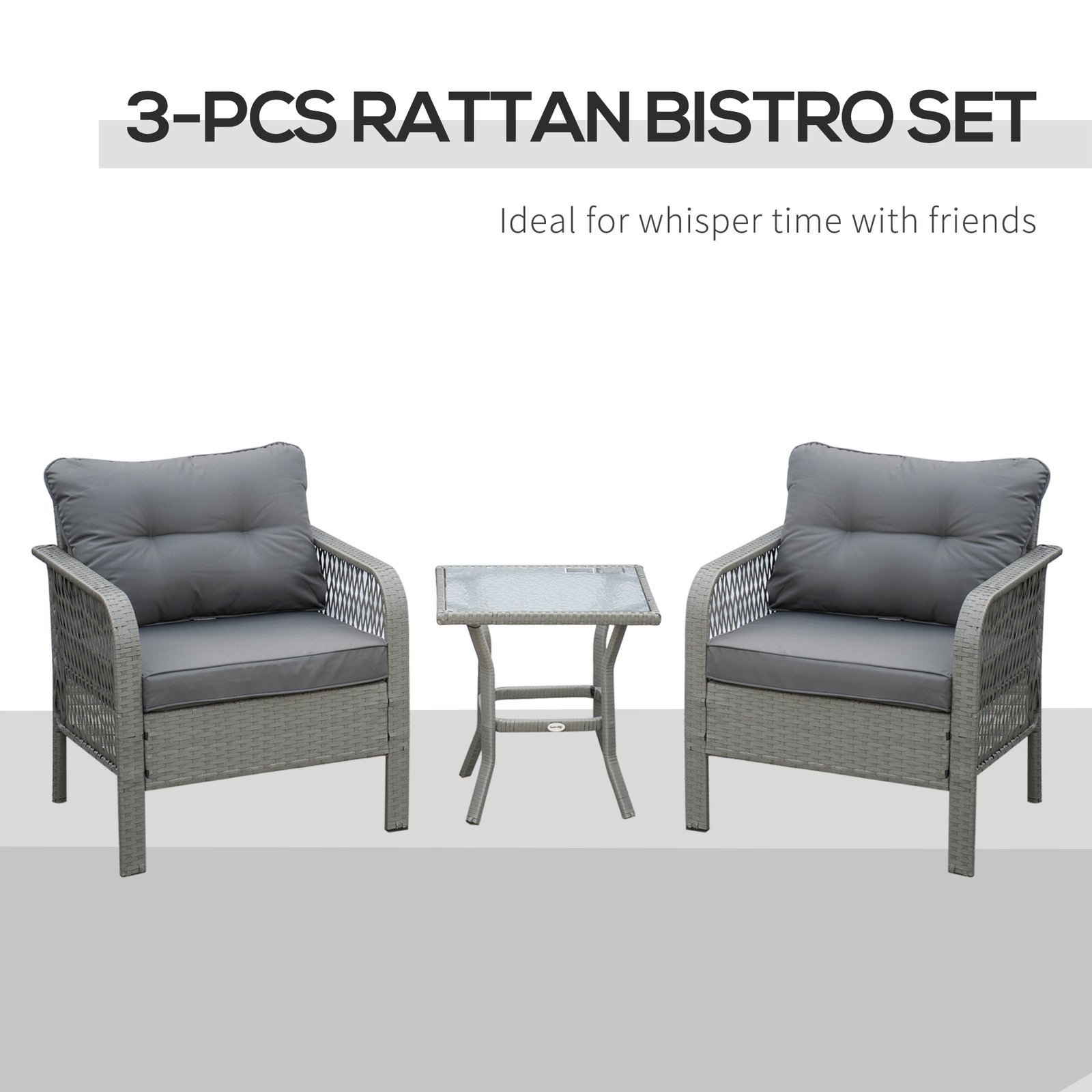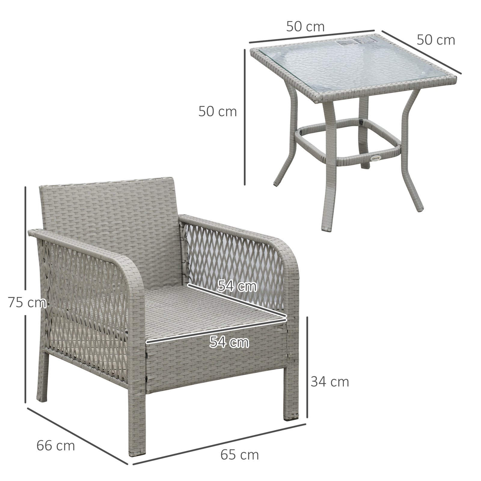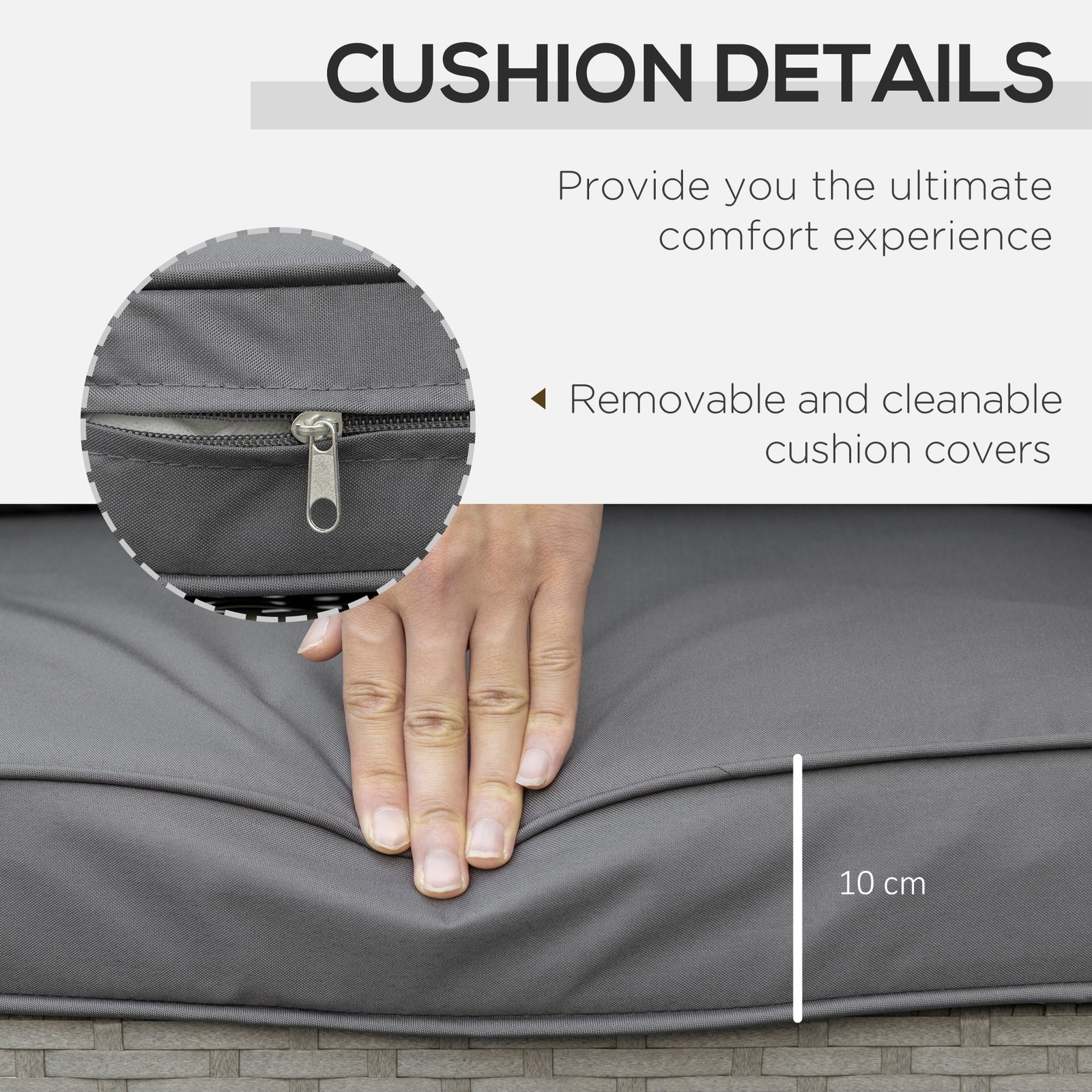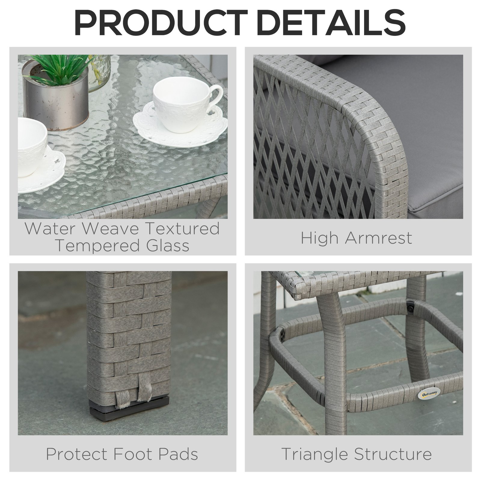 Start the season off the right way – do it with this three-piece garden set from Outsunny. Formed of two armchair-seats and a matching table, you can easily enjoy the sun with a friend. Metal forms a strong frame for all pieces, where PE wicker is wrapped around for an on-trend rattan look. The table is fitted with a tempered glass top for a solid and safe holding place. Both chairs come with thick padded cushions – simply sit down and enjoy the fresh air.