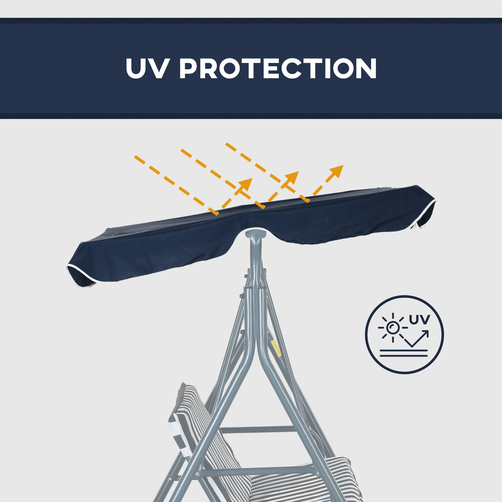 Relax in style and comfort – do it with this Outsunny swinging chair. Seats up to three people: plenty of room to relax with friends or grab extra room for yourself. The adjustable angle of the canopy allows you to shield yourself from mild weather above at different positions. With a padded seat and high back, you’ll be relaxing comfortably and with support. Sport stripes for style, this season and beyond!