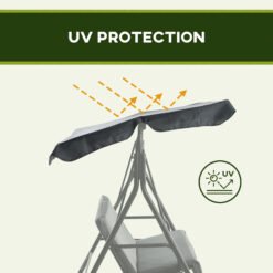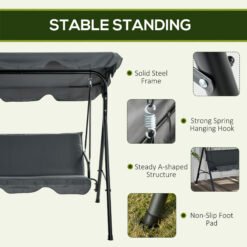 Outsunny 3 Seater Garden Swing Chair, Outdoor Swing Chair with Adjustable Canopy, Mental Frame & Cushions, Grey