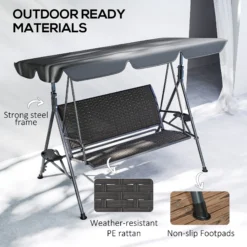 Rest and relax in beautiful outdoor surrounds – with full help from this Outsunny swinging garden chair. 132 cm seat length holds up to three people – plenty of room to sit with company, or grab lots of room to yourself. The adjustable 45? angle canopy shields you from sun glare and light weather. The steel frame means a strong structure, with non-slip foot pads to complete.