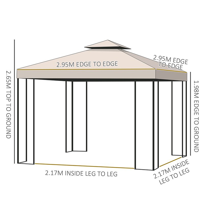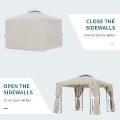 Outsunny 3 x 3 m Garden Gazebo Double Roof Marquee Patio Wedding Party Tent Canopy Shelter with Sidewalls, (Beige)