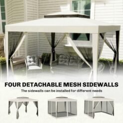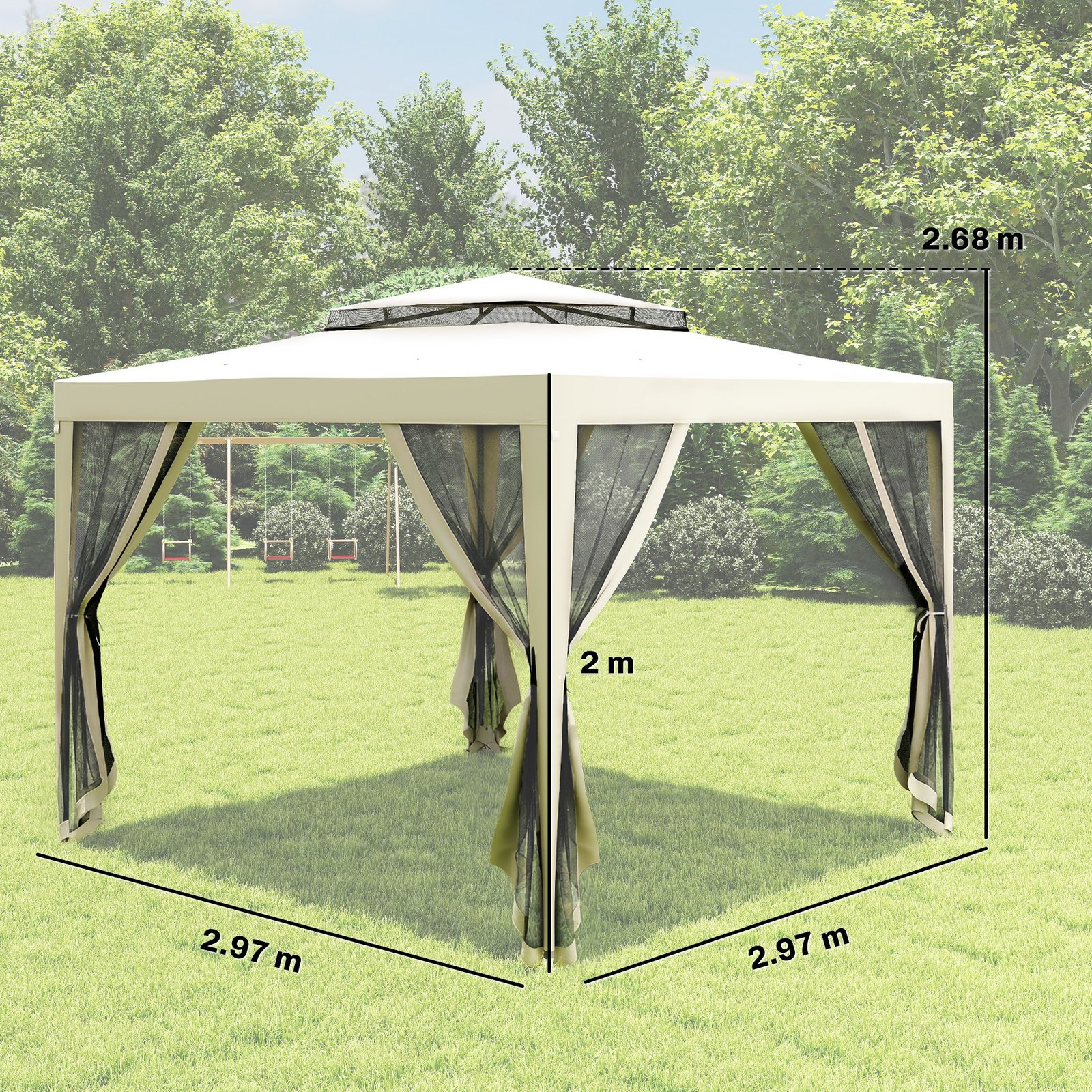 Outsunny 3 x 3 m Gazebo, Netting Party Tent, Patio Canopy Outdoor Event Shelter with Double Tier Roof, Cream White