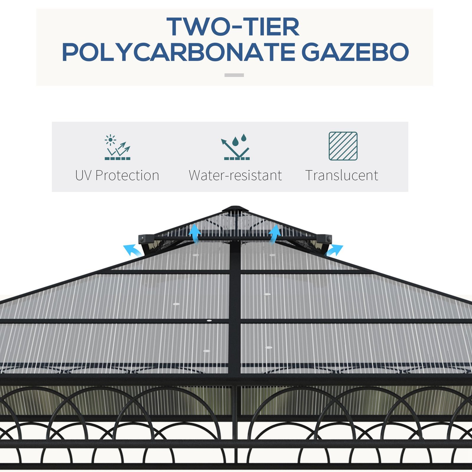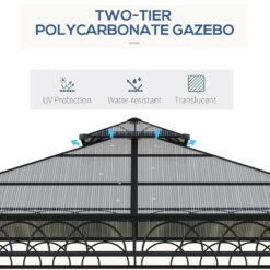 • Two-tier polycarbonate roof: Polycarbonate gazebo has a strong and protective top, keeping you protected from weather inside this hard roof gazebo.