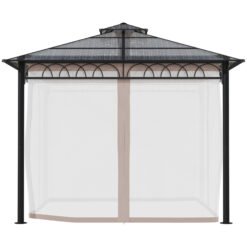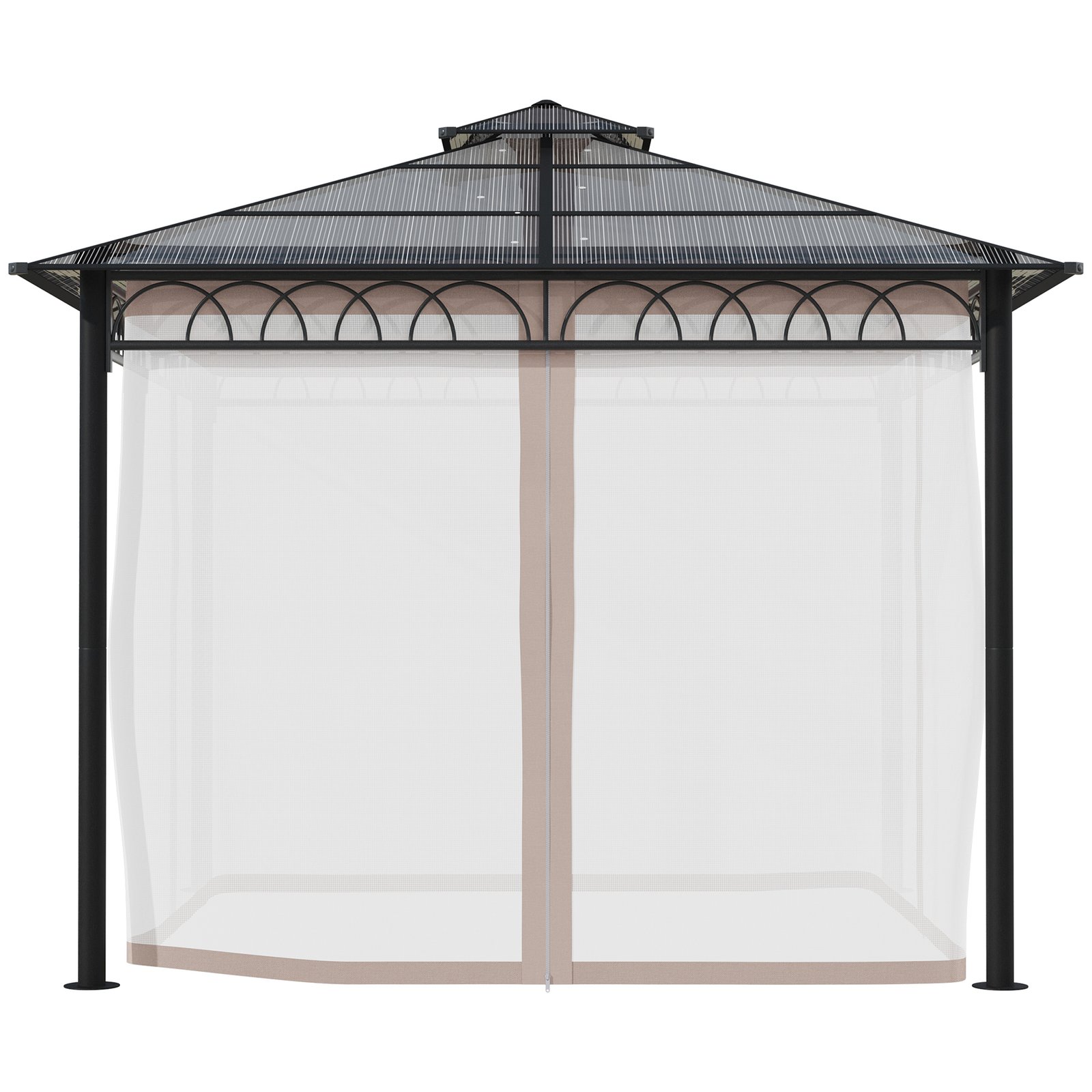 Outsunny 3 x 3 (m) Outdoor Polycarbonate Gazebo, Double Roof Hard Top Gazebo with Galvanised Steel Frame, Nettings & Curtains for Garden, Lawn, Patio and Deck, Khaki