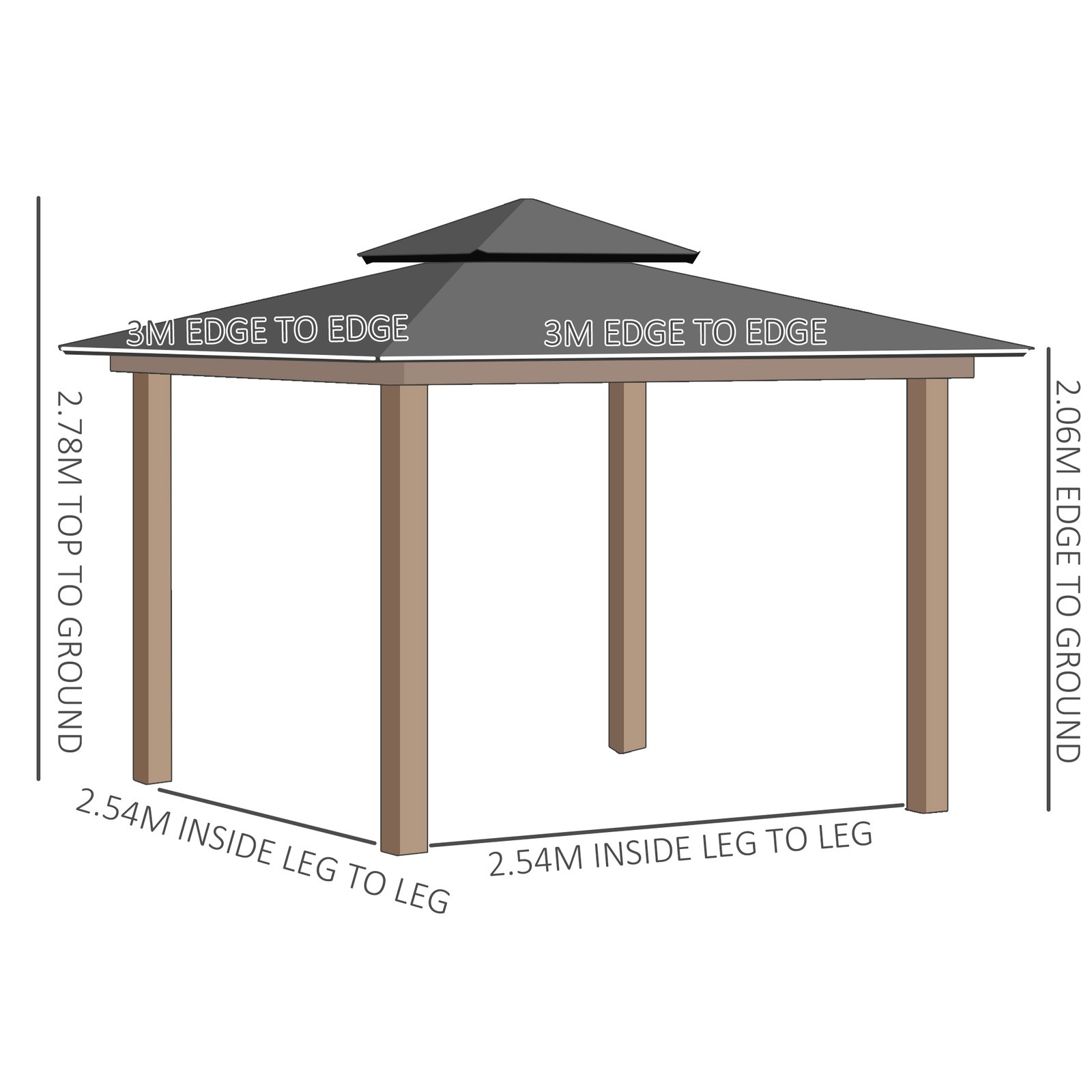 - Overall Dimensions: 300L x 300W x 278H cm