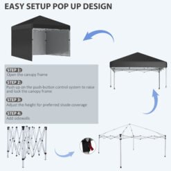 Transform your high-end outdoor events with the Outsunny 3×3 m pop-up gazebo, designed for the event planner. Its quick setup and takedown make it ideal for versatile use across various gatherings. The elegant design, featuring three walls, offers both privacy and a openness, perfectly complementing the luxurious ambiance of your events. With stakes, ropes, and sandbags, it remains stable in any weather. Effortlessly portable, it enhances your planning with ease and sophistication.