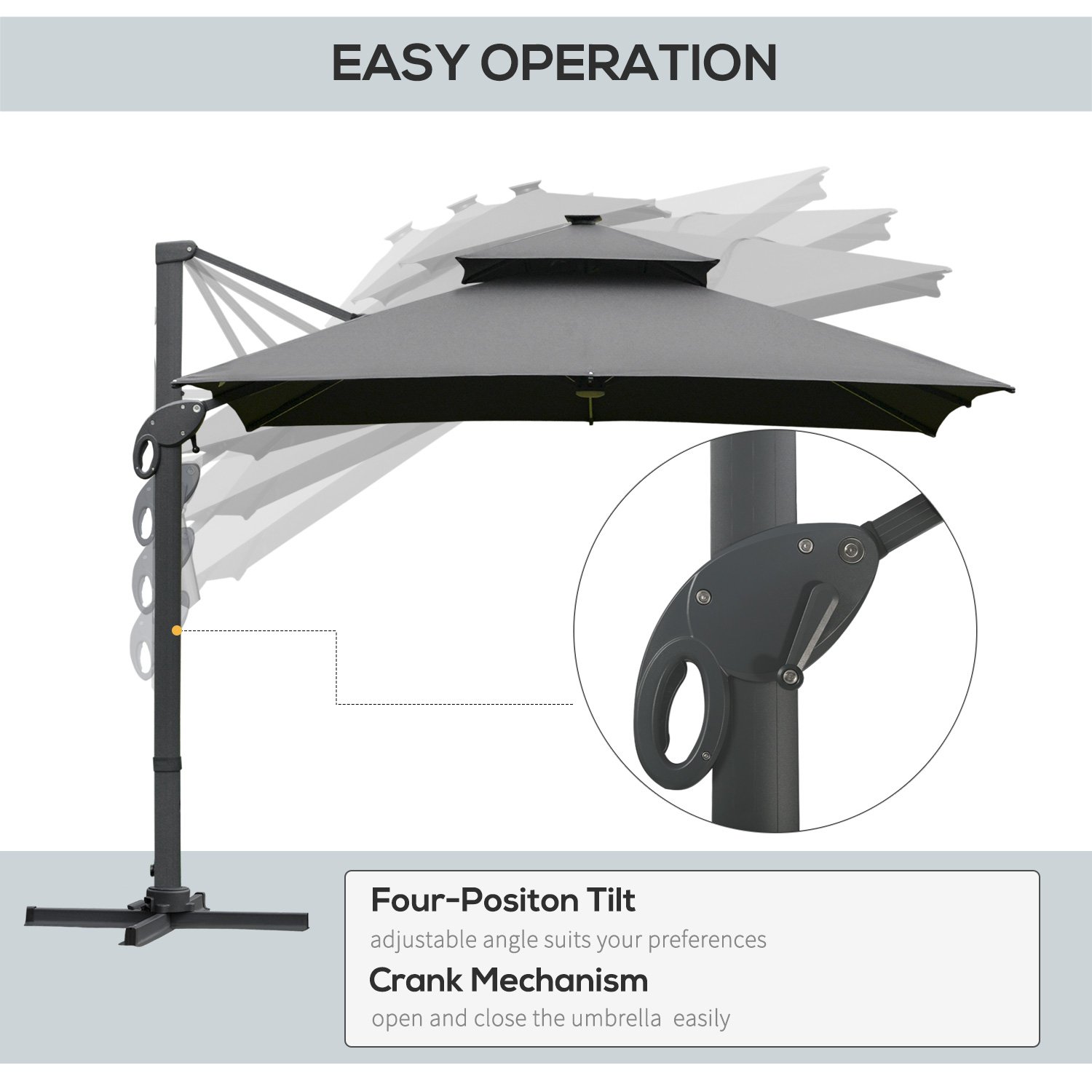 Outsunny 3 x 3(m) Aluminum Sun Square Canopy Top w/ Adjustable Pole Angle Dark Grey