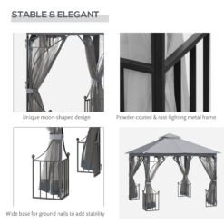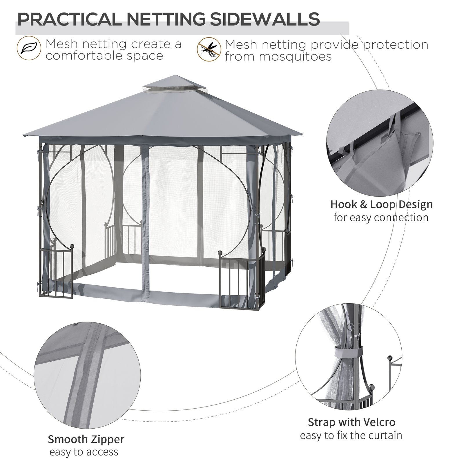 Bring life back to your outdoor living space with this hot tub gazebo with sides from Outsunny. The steel frame gazebo offers optimum protection against harmful UV sunlight and rain. The slim lines and edge design ensures great usage, while the included ground stakes offer added stability. The powder coated rust-resistant metal frame is designed to last for years of usage. The double tiers on the top offer better ventilation.