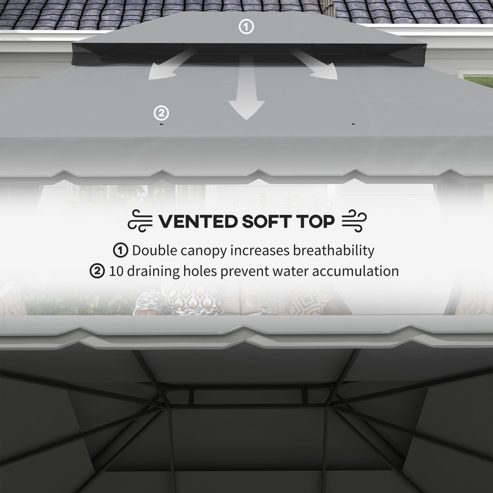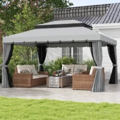 Transform your garden into a haven with the 4m x 3m Outsunny gazebo, perfect for those who cherish outdoor living and social gatherings. Designed for privacy and comfort, this elegant pavilion offers a serene escape for your guests, shielding them from harsh sunlight and light rain. The durable structure, complete with mesh curtains to ward off insects, ensures stability even in breezy conditions. Host your garden barbecues and gatherings with confidence.