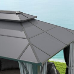 Transform your garden into a haven with the Outsunny polycarbonate gazebo. Featuring 6mm thick polycarbonate panels, this waterproof gazebo shields you from UV rays while keeping you cool with its clever two-tier airflow design. Stop the sun at any angle and get rid of unwanted winged guests with curtains and nettings. Enjoy a serene outdoor shelter with sides, great as a heavy-duty, permanent fixture for any patio.