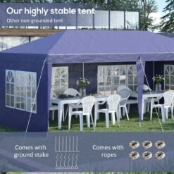 The Outsunny 3 x 6m pop up gazebo is a fantastic and hassle-free outdoor shelter option. It offers lots of interior room for various activities. The four removable walls allow to easily create a fully open or semi-open space. The party tent features a powder-coated steel frame, providing a strong core. It comes with a convenient carry bag, making it portable and convenient for transportation. Guy ropes and ground stakes included for added stability and security.