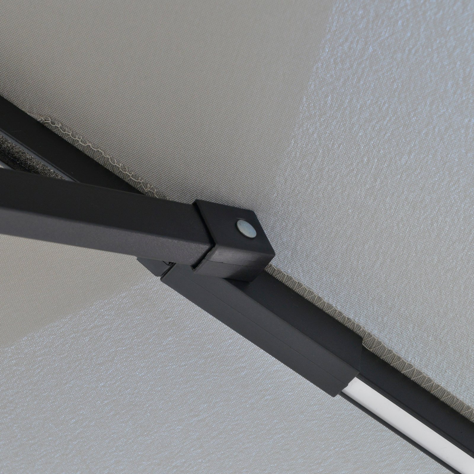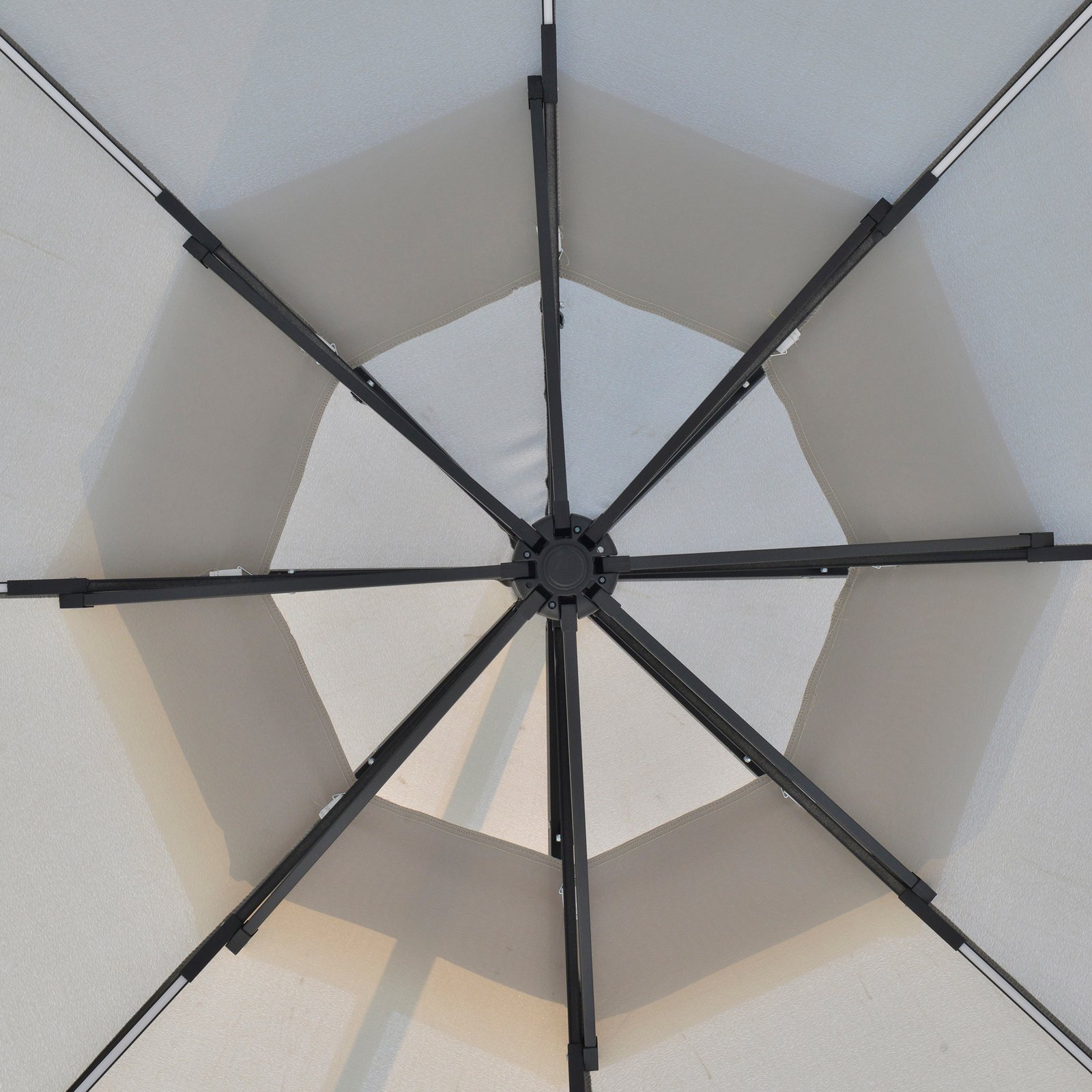 - Metal structure is strong, with eight ribs connecting to the canopy for extra support