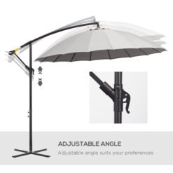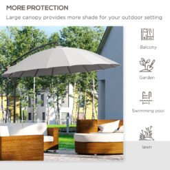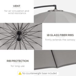 Outsunny 3(m) Cantilever Umbrella 18 Ribs & Vents Adjustable Angle for Patio Light Grey