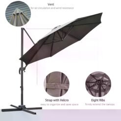 Ensure you keep yourself protected enjoying the sun with this umbrella from Outsunny. the pole is made from aluminium, resistant to chipping, peeling, rust, and corrosion. The shade, made from polyester, is easy to clean, will not fade easily. Adjustable to four different positions and able to rotate a full 360 degrees via the foot pedal, this umbrella will completely cater to preferences and is great for all-day relaxing. Its a stylish and functional item for the garden, patio, and other outdoor areas.