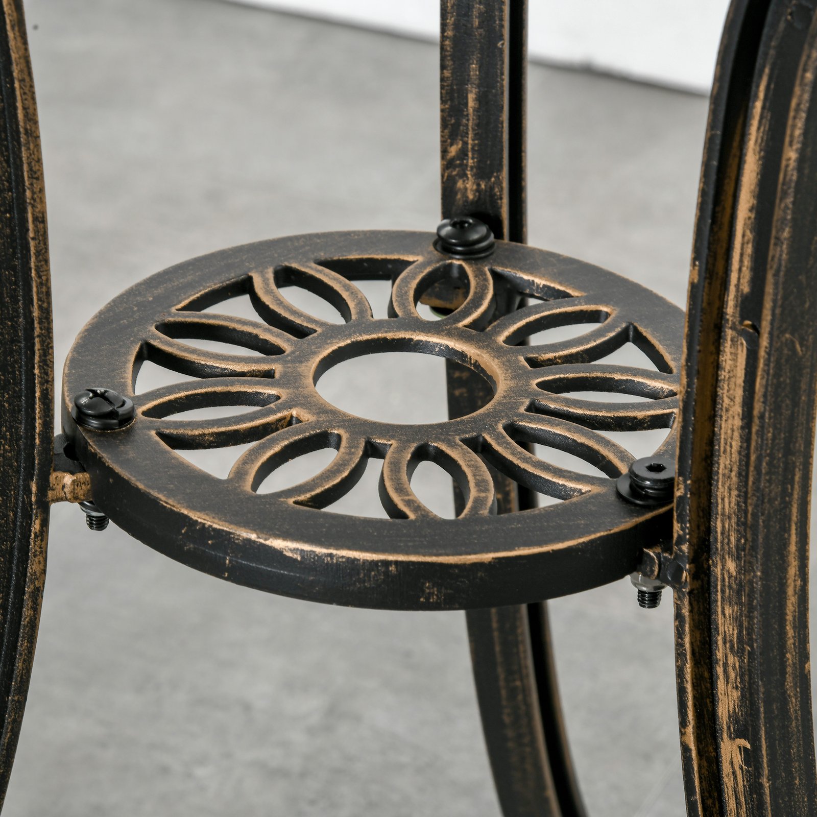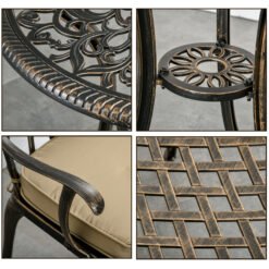 Transform your garden into a haven of elegance with the Outsunny three-piece cast aluminum garden coffee set. Tailored for gardening enthusiasts, this exquisite bistro set combines durability with timeless beauty, effortlessly withstanding diverse weather conditions. The intricately designed chairs and matching table offer unparalleled comfort, making them perfect for leisurely afternoons spent savoring tea. Elevate your garden’s aesthetic appeal while enjoying luxurious relaxation.
