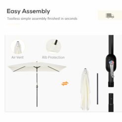 This Outsunny tilting parasol is an excellent choice for staying cool when sunny outside. The polyester canopy filters most UV rays, keeping you protected from potential sun damage, as well as helping to reduce sunstroke. It comes with a crank handle to open and close easily, as well as a button – adjusts the angle to cover the sun throughout the day. Note – base not included.