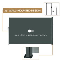 Prevent glaring sun and gusting winds disturbing you outdoors with this retractable screen from Outsunny. The metal base frame is tough to ensure it is a lasting addition in your garden, with it attaching securely and easily to cement or solid wood for quick set up. The free standing awning is made from polyester with PA coating for weather-resistance, with it pulling out smoothly and fixating in place with the clip lock handle – a simple operation. A great way to enjoyably extend your time out in the garden.