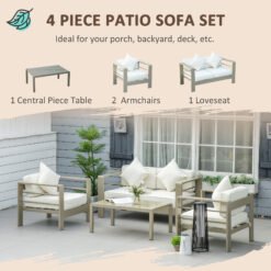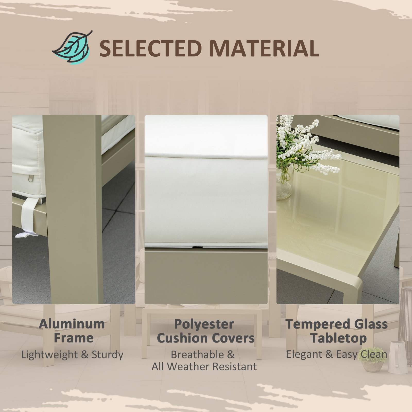 Comfort, with a chic touch – this Outsunny four-piece garden set is here to make an impact in your home, this season and beyond. Each piece is made from powder coated aluminium for a strong core, coated in a champagne gold colour – elegant. Set comes with a two-seater sofa, two armchairs and a matching coffee table, bringing your closest people together. Seat and back cushions for comfort. A glass table top for a sleek finishing touch.