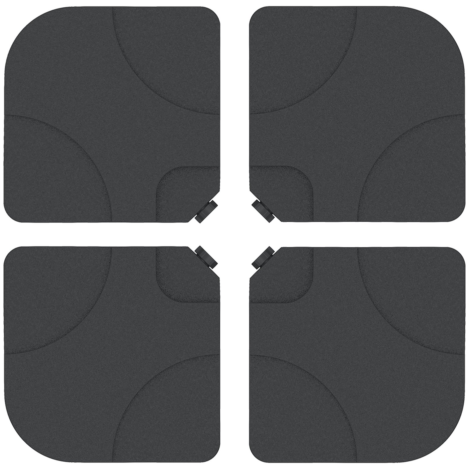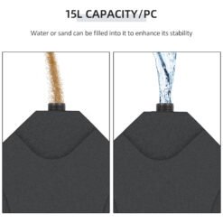 This Outsunny weights for parasol are great accessories to keep your parasol, umbrella steady. The parasol base weights come in 4 piece configuration to be placed on the cross feet of your umbrella. Made from a high density polyethylene material, our parasol bases can withstand most weather elements. Each of the pieces can be filled with water or sand to make them heavy and more secure. This patio umbrella base is a great essential to have as part of your umbrella to keep it safe and secure.