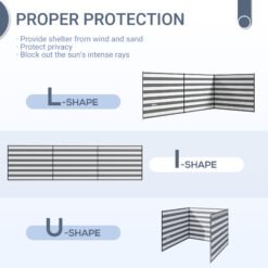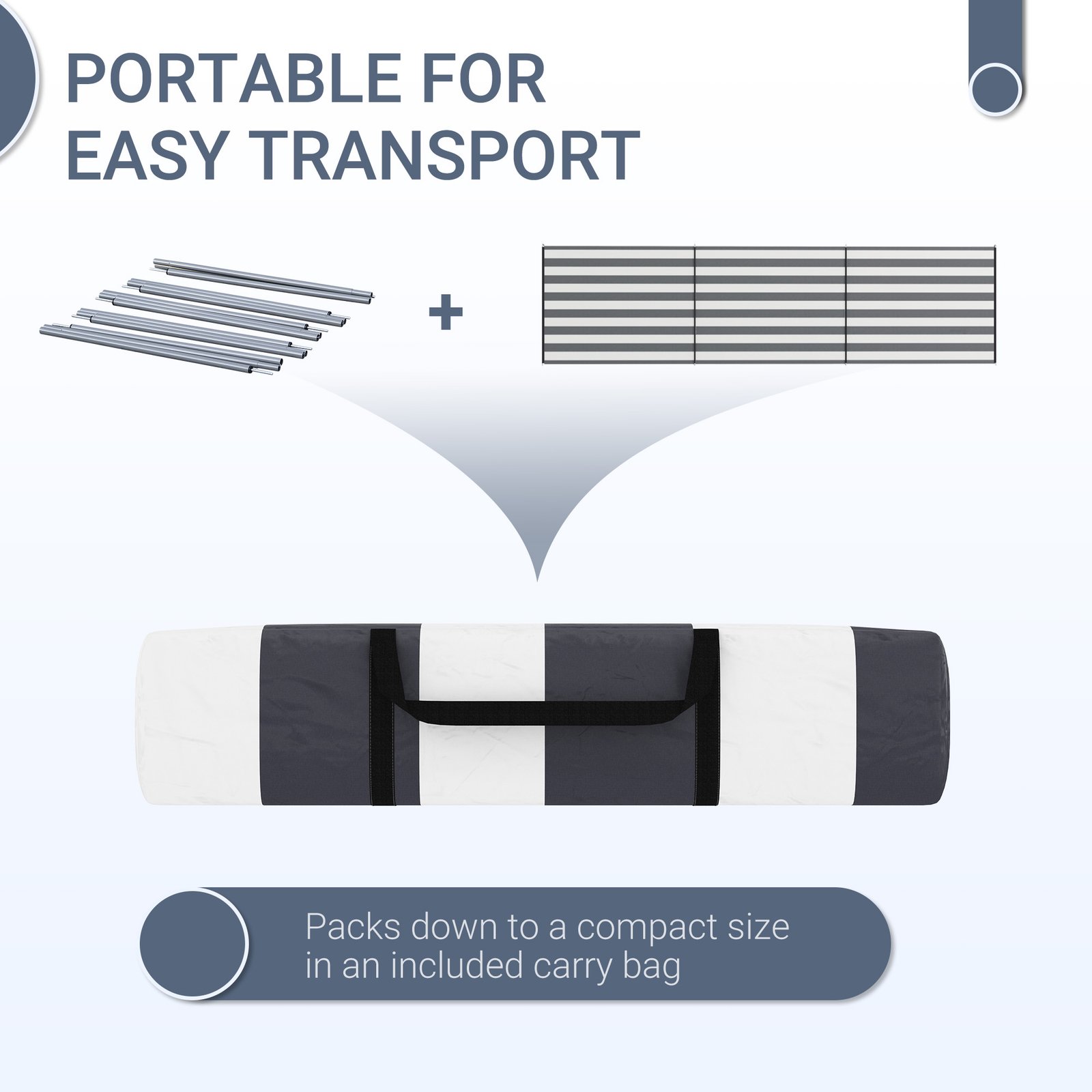 A must for outdoor breaks, this Outsunny 150 x 540cm windbreak protects you from wind, sun, light rain and flying sand – as well as creating a private area when needed. Covers a generous area, making the camping windbreak great for when you and friends are relaxing outdoors – covers you all. Steel poles so it stands upright and in position, with the fabric creating safe shade. Comes with carry bag, guy ropes and ground stakes.