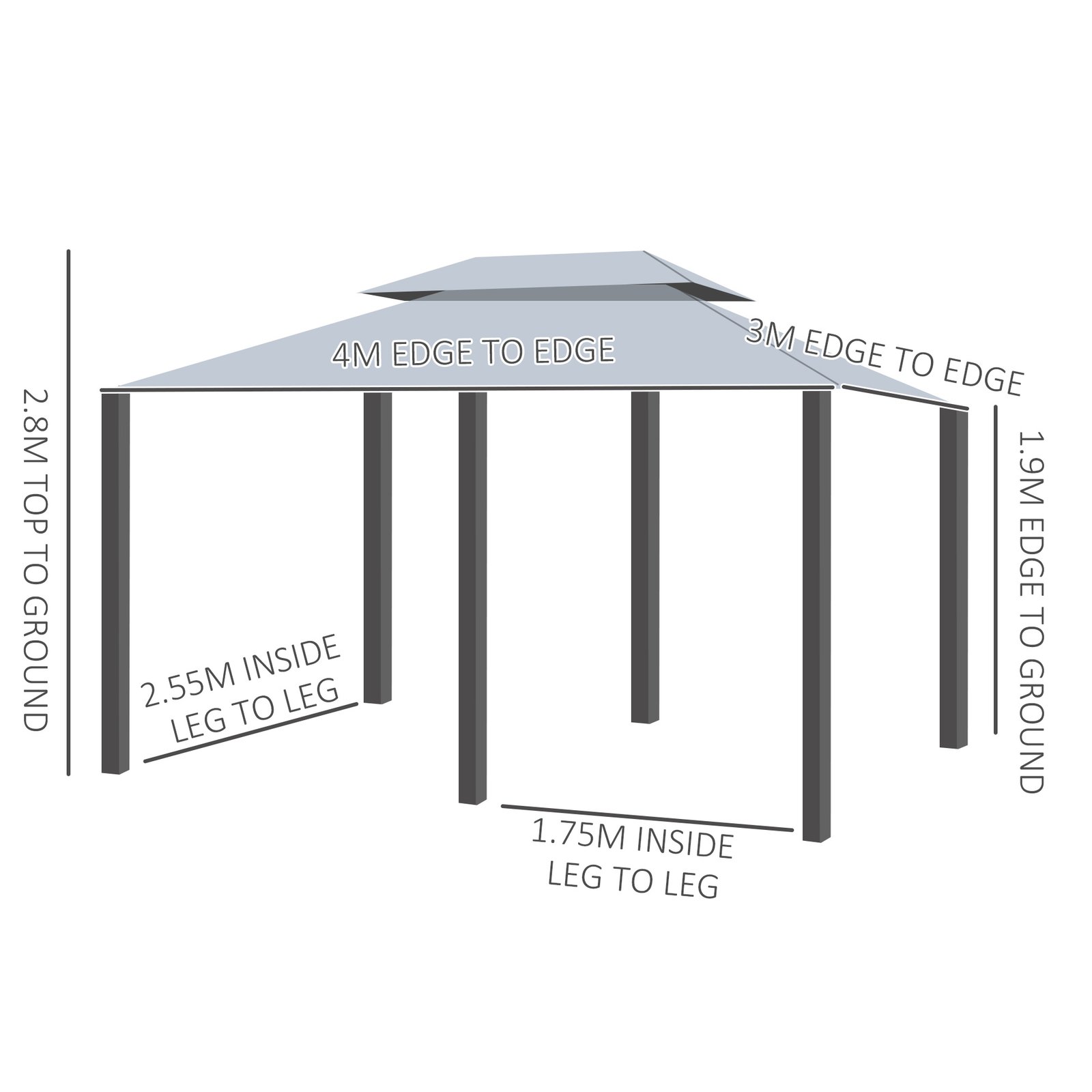 - Overall Dimensions: 3L x 4W x 2.8Hm