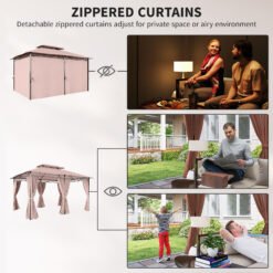 - Includes the steel structure, two-tier canopy top and curtains for your convenience