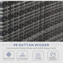 Transform your outdoor space into a haven with the Outsunny rattan garden furniture set. Designed for garden enthusiasts, this exquisite ensemble includes two elegant two-seater sofas, a chic coffee table, and a spacious storage trunk. Crafted with a robust metal frame and wrapped in weather-resistant wicker, it promises durability and style. Plush cushions ensure unparalleled comfort for long hours of relaxation, making every gathering a seamless blend of elegance and ease.