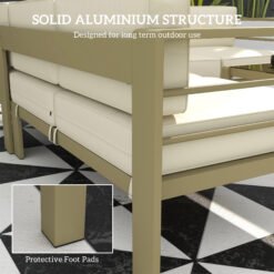 Simple and sleek, finished with total comfort – this Outsunny aluminium garden set ticks all the right boxes. Metal frames mean strength and suitability for outdoor use, with padded cushions on the seats and back so you can sit and relax in comfort. Patio furniture set comes with five pieces: two two-seater sofas, a corner chair, an armchair and rectangular table: set up to a shape which suits you. Complete with a glass top on the table, for a sleek look.