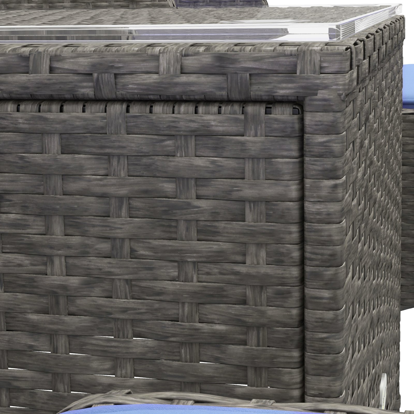 Outsunny 5 Pieces PE Rattan Garden Furniture Set, Wicker Outdoor Sofa Set w/ 2 Armchairs 2 Stools Glass Top Table Cushions, Blue