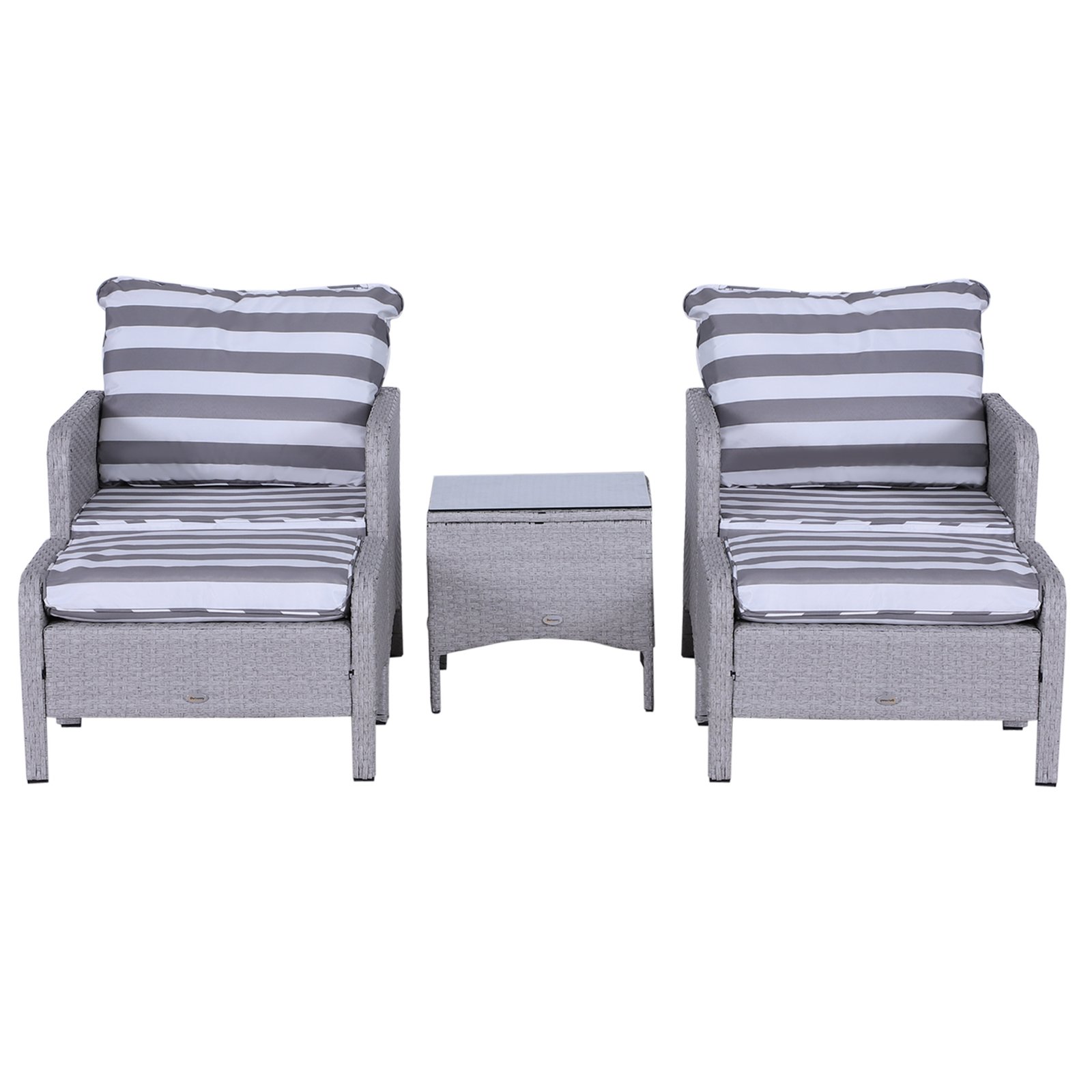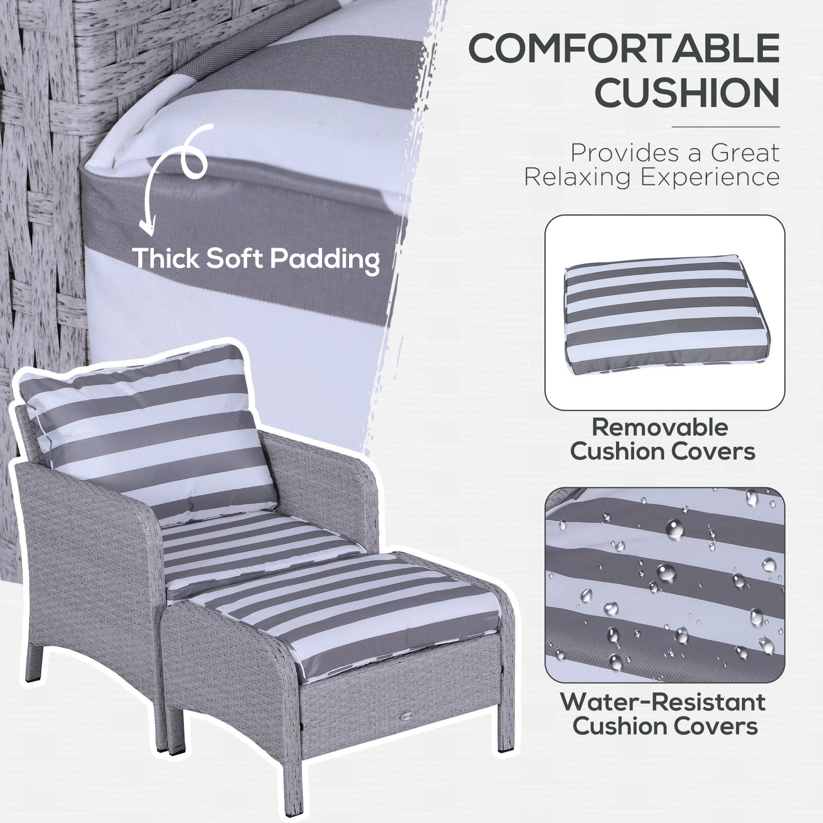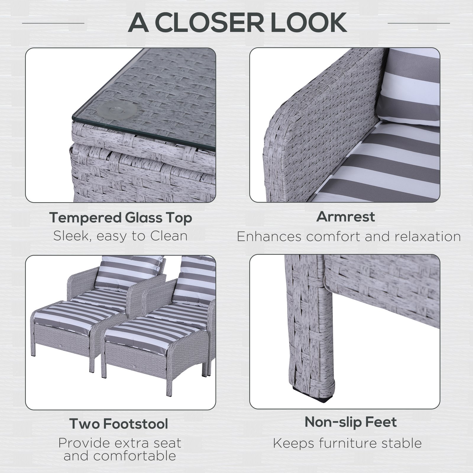 Sit back and relax in complete comfort with this rattan sofa set from Outsunny. Formed of five pieces, features two armchairs, two footstools and a matching coffee table. Made from hand woven PE rattan, with a steel frame underneath for extra support and stability. Thick padded cushions ensure you’ll be relaxing comfortably for hours, You can put your feet on the footstool, or use it as an extra seat. This garden sofa set is a fantastic combination, comfortable and minimal hassle.