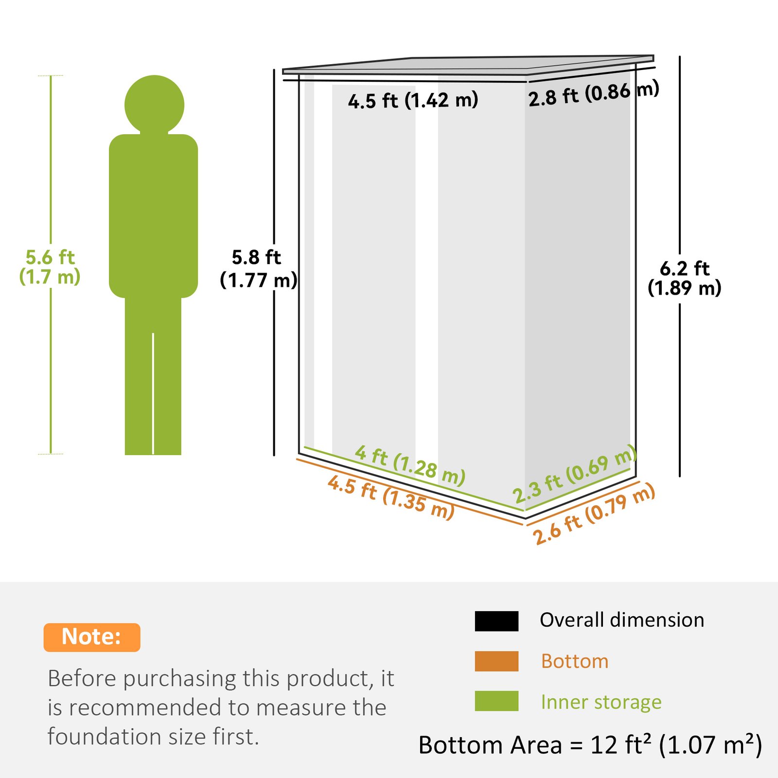 • Open inner storage: This outdoor shed provides plenty of room in your garden for keeping tools, equipment and anything you need to be kept dry and protected. Foundation kit NOT included.