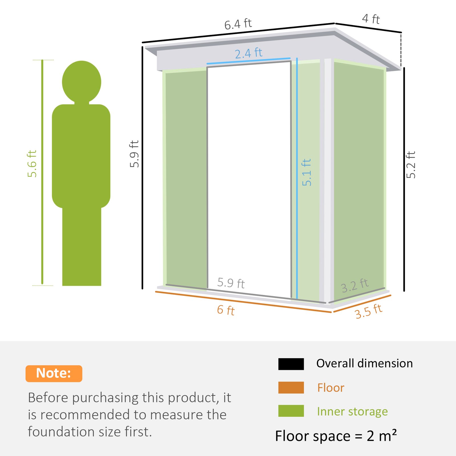 Keep your garden equipment securely stored in its own place with the Outsunny 6.5 x 4ft metal shed. Constructed from galvanised steel, the tool shed is strong and resilient, great for outdoor use. The spacious interior provides lots of room for tools, while two clear windows and ventilation slots ensure plenty of natural light and fresh air. The sliding door, complete with a lock and key, allows for easy access and added security.