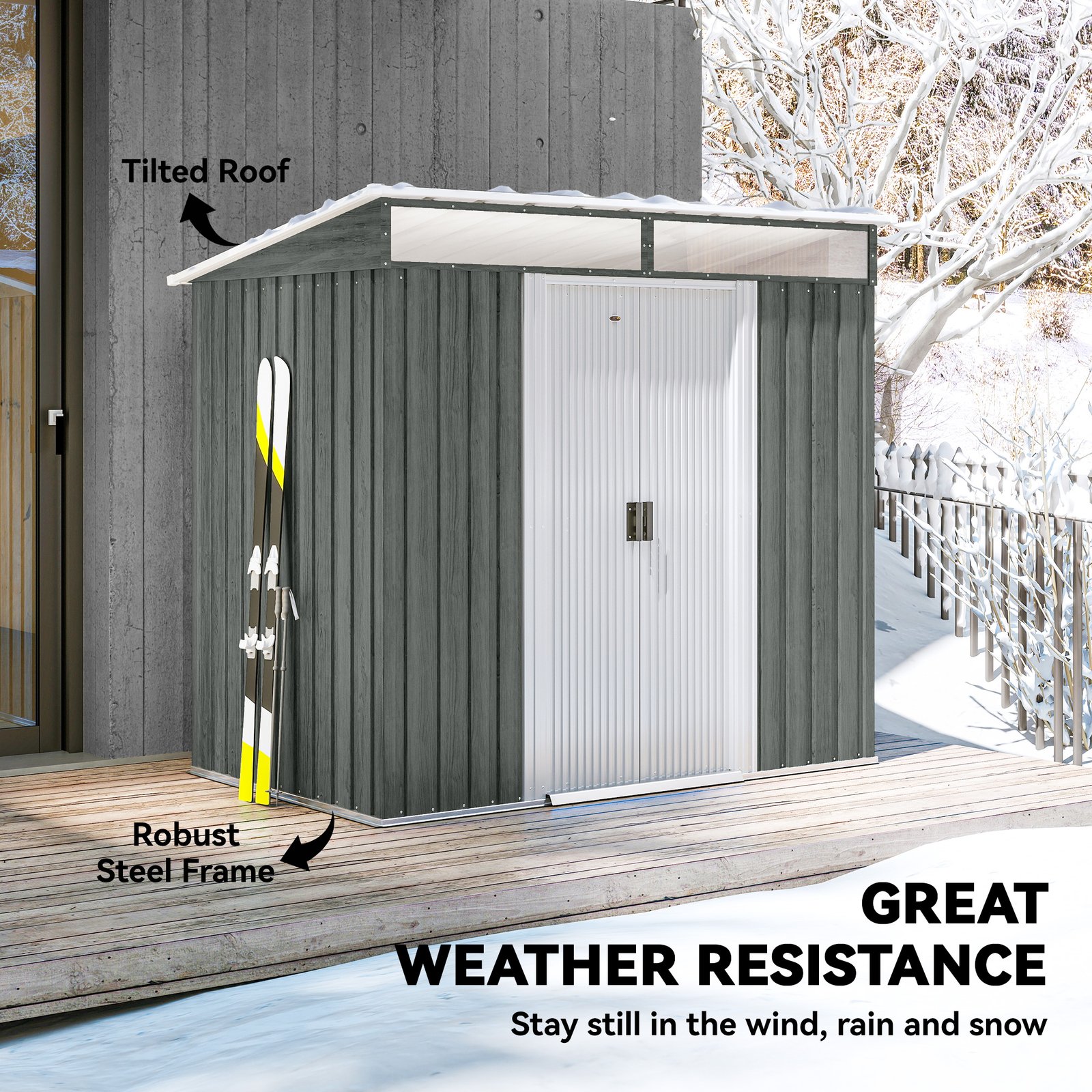 - Metal bike shed for storing tools, equipment and outerwear