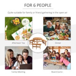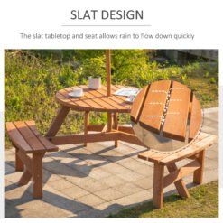 This Outsunny wooden bench set is a great addition to any outdoor setting, offering the ability to accommodate up to 6 people. Circular design gives lots of room for comfortable movement and enjoyment of the space. A precision-cut hole in the middle for parasol enables shade options in summer. Fir wood construction for added strength and stability with smooth edges and weight capacity of 50 kg for table and 227 kg for bench.